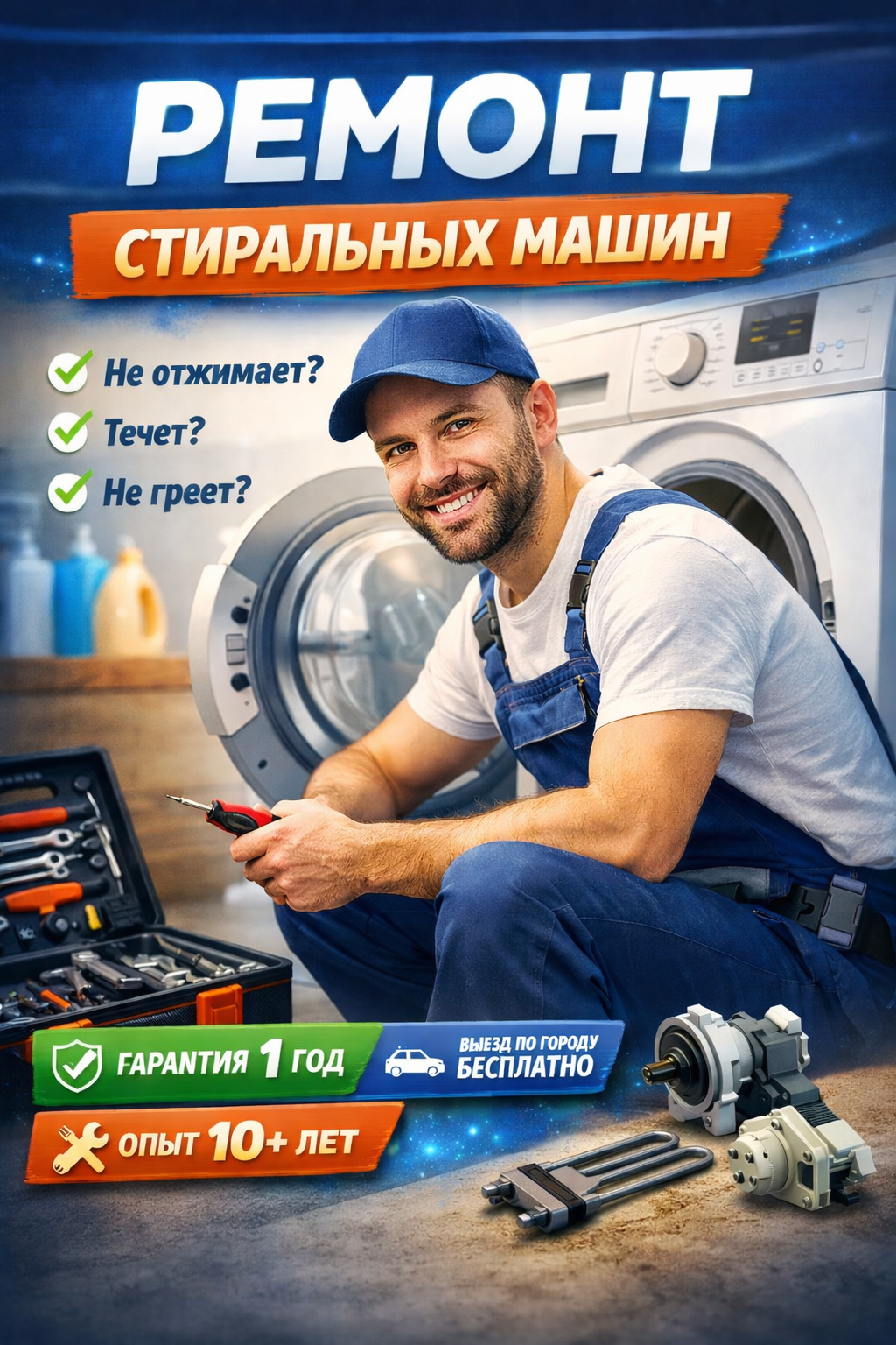 Обратилась с проблемой — стиральная машина перестала отжимать и сильно шумела. Позвонила мастеру, он приехал в тот же день. Быстро нашёл причину поломки и всё починил. Работает теперь отлично. Очень понравилось, что всё объяснил и дал гарантию на ремонт. Рекомендую 👍